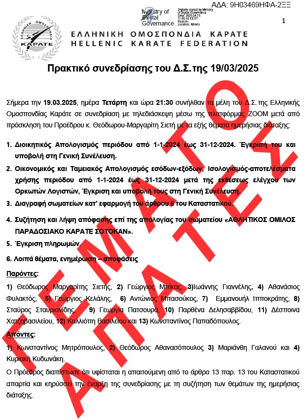Πρακτικό της ΓΣ των Εκλογών της 1/12/2025 δεν έχει ακόμα αναρτηθεί στη ΔΙΑΥΓΕΙΑ,