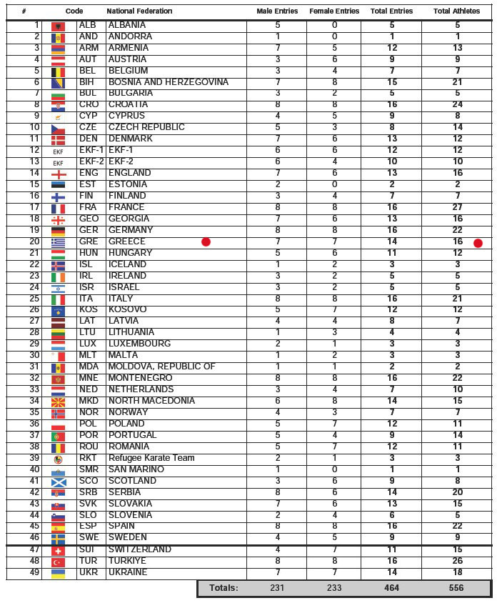 Με κλικ εδώ βλέπετε το Results Book της Sportdata, που τα έχει όλα! Δίνουμε ιδιαίτερα τον Πίνακα με τις συμμετοχές των χωρών και τον Πίνακα των μεταλλίων!