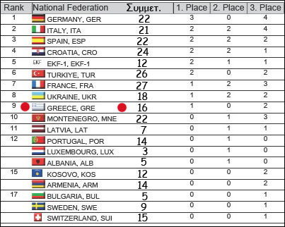 (9η στην Ευρώπη με συμμετοχή 16 αθλητών), όταν την επί χρόνια εκμάθηση του