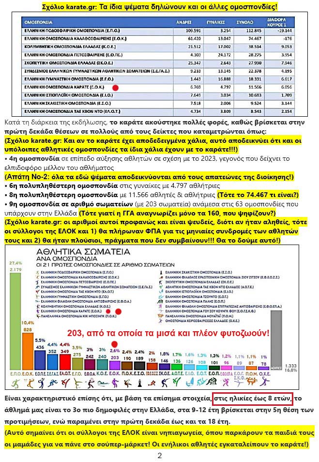 τις δηλώσεις περί 203 σωματείων και 11.566 ενεργών αθλητών της ΕΛΟΚ και