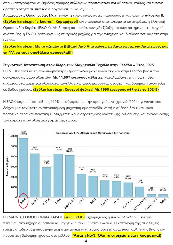 4 - Και τέλος, η Διοίκηση της ΕΛΟΚ "εντυπωσιάζει" με τις κατάφορες παρανομίες της και την οικονομική εκμετάλλευση της ομοσπονδίας, των αθλητών και των γονιών τους!