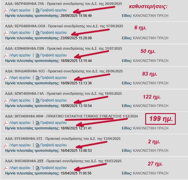 Οι επόμενοι Πίνακες είναι από το site της ΕΛΟΚ στη ΔΙΑΥΓΕΙΑ και δείχνουν πολλές παραβάσεις στο παρόν έτος του νόμου περί αναρτήσεων στη ΔΙΑΥΓΕΙΑ των Πρακτικών ΔΣ και ΓΣ της ΕΛΟΚ! Μιλάμε για καραμπινάτες καθυστερήσεις ανάρτησης των Πρακτικών της ΕΛΟΚ, όπως γινόταν επί όλα τα χρόνια της διοίκησής της από τους τρεις Μαφιόζους Σιετή - Μητρόπουλο - Φυλακτό και όλο το υπόλοιπο ΔΣ φυσικά!