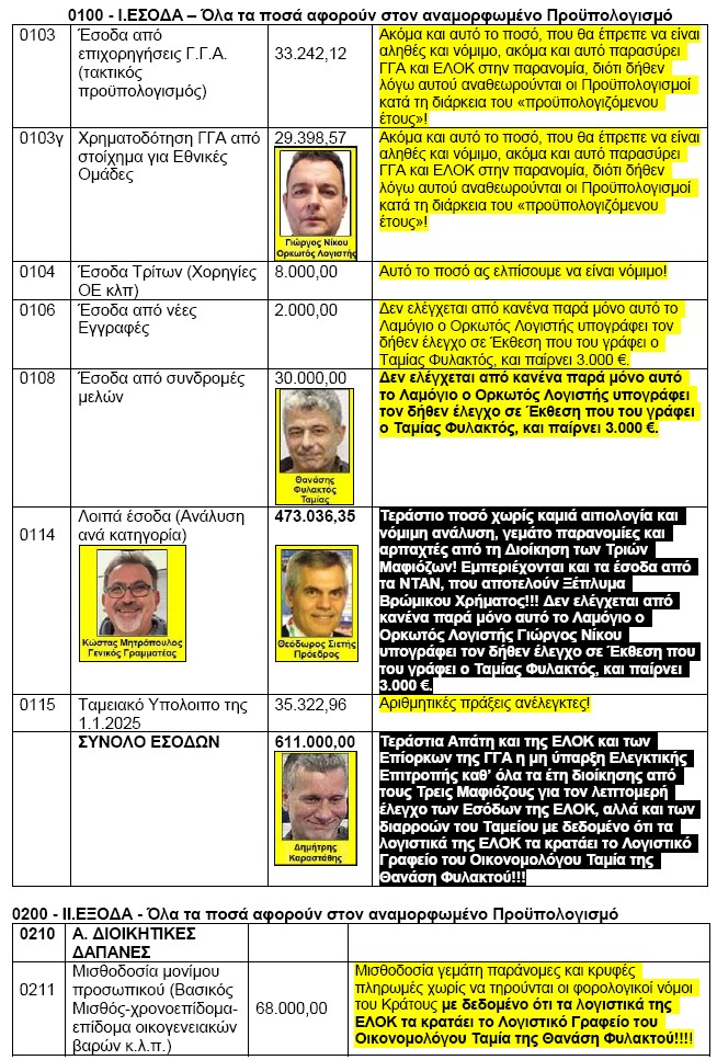 Ο Αναθεωρημένος Προϋπολογισμός του αρχικού Πρακτικού της 31/7/2025 (με κλικ εδώ, όπως τον έγραψε η ΕΛΟΚ) και σε επανάληψη με τις Παρατηρήσεις μας επί των τελικών ποσών στο PDF με κλικ εδώ και στα επόμενα: