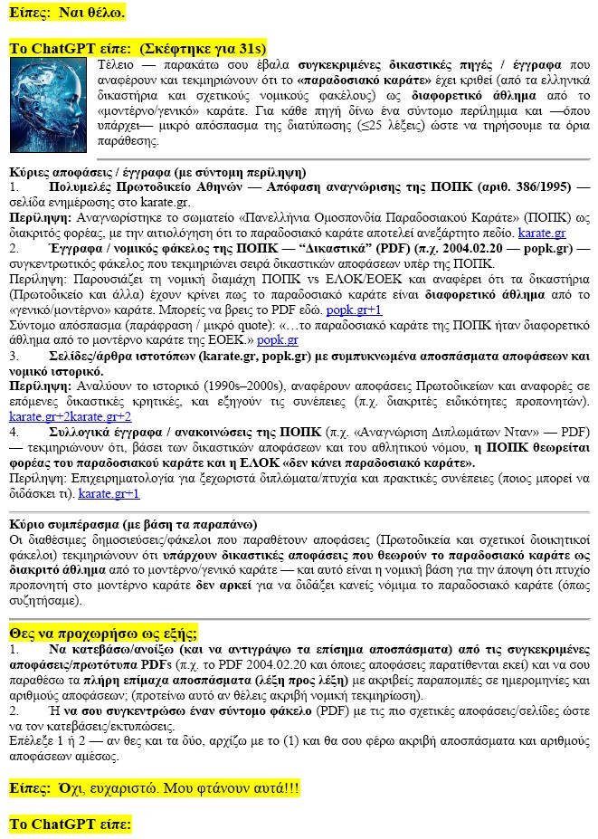 Δ - Τεχνητή Νοημοσύνη εναντίον Φυσικής Βλακείας! Θέμα: Παραδοσιακό καράτε και Σύλλογοι? (Ενότητες)