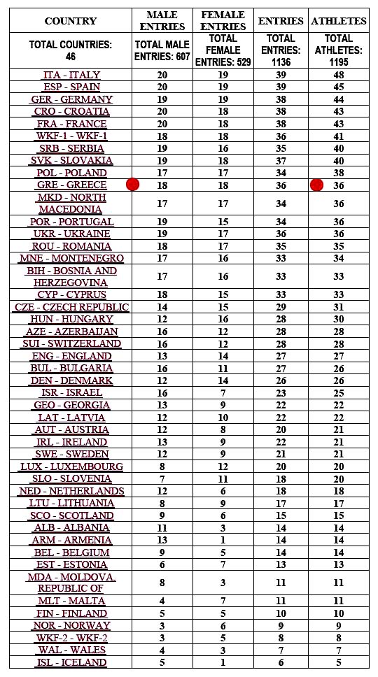 Οι Συμμετοχές ανά χώρα αλφαβητικά!