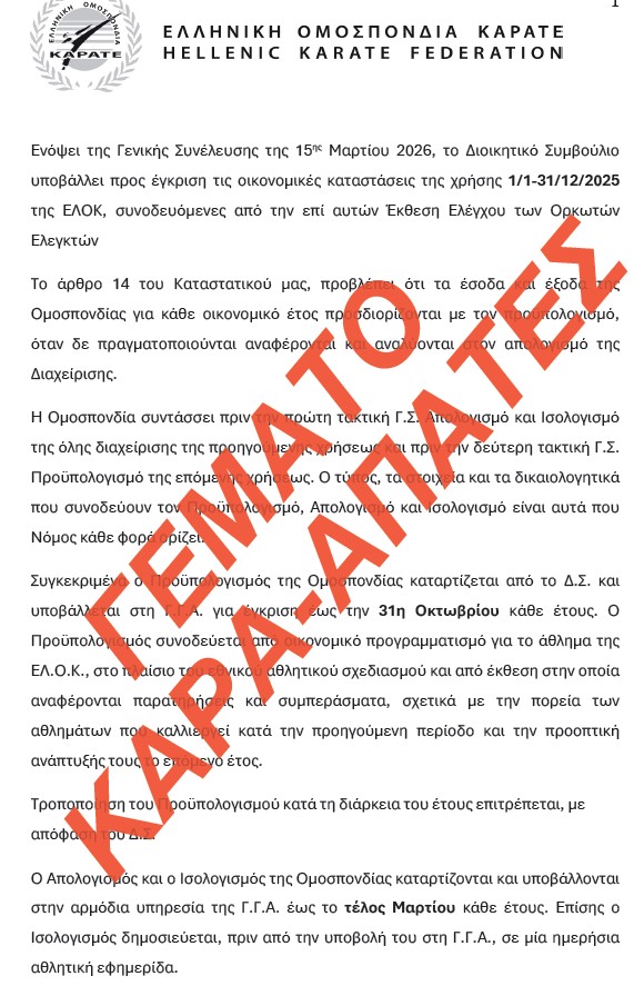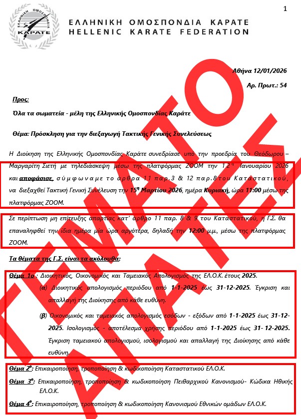 Με κλικ εδώ και στην κάτω εικόνα βλέπετε την σχετική Πρόσκληση του ΔΣ της ΕΛΟΚ με σημειωμένες τις παρανομίες της για την ΓΣ της 15/3/2026!