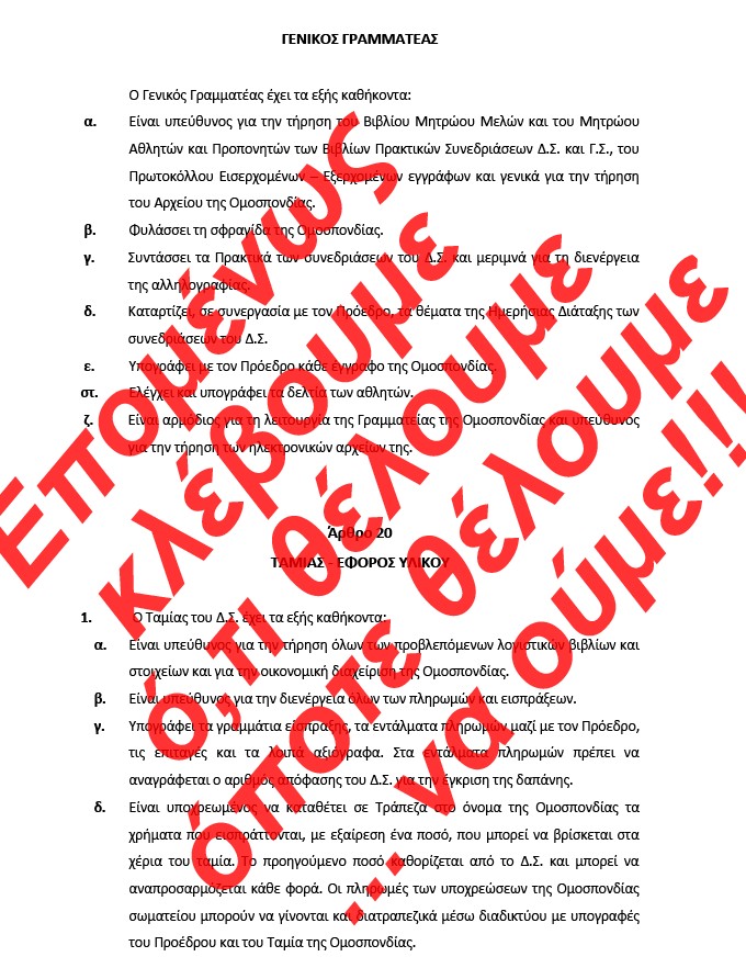 προς τους συλλόγους, τα πρόστιμα που θα σας χτυπήσουν όλους (μέλη ΔΣ και