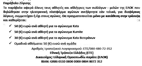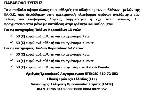 Οι κατηγορίες των αγώνων και τα ... αρμεχτικά παράβολα των 50 € ανά αθλητή, που εικονικά τα πληρώνουν οι σύλλογοι ως "ενίσχυση για τους Σκοπούς της ΕΛΟΚ", αλλά στην πραγματικότητα τα πληρώνουν οι αθλητές και οι γονείς τους!!! Κλέφτες, ψεύτες, απατεώνες!!!