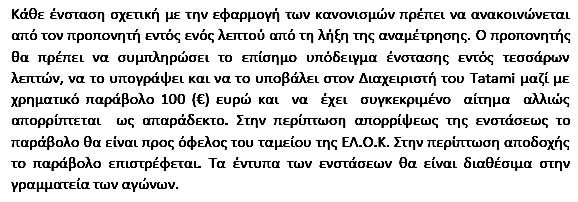 Αλλά το κανονικό άρμεγμα είναι εδώ: στα παράβολα ζύγισης! Αυτός είναι και ένας κύριος λόγος για τις λίγες συμμετοχές των συλλόγων! ΄Στην πραγματικότητα, αθλητές και σύλλογοι σας δείχνουν πόσο εκτιμούν τους αγώνες που διοργανώνετε! Το ίδιο κάνουν και οι ... θεατές των αγώνων σας! Βάλτε εισιτήριο 10 € και θα ... παίζετε μόνοι σας!!!
