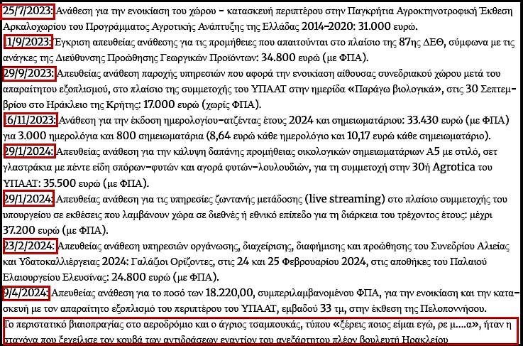 Οι στενές σχέσεις με τους βασικούς εμπλεκόμενους της δικογραφίας ανάγονται στο 2019 όταν ο Κυριάκος Μητσοτάκης καθόταν σε τραπέζι στην Κρήτη δίπλα στο Λευτέρη Αυγενάκη και σε γνωστούς γαλάζιους αγρότες από το Ηράκλειο.