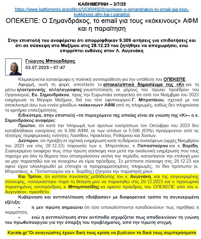 karate.gr: Ισχυρό και επιβαρυντικό στοιχείο για τον κ. Βορίδη!