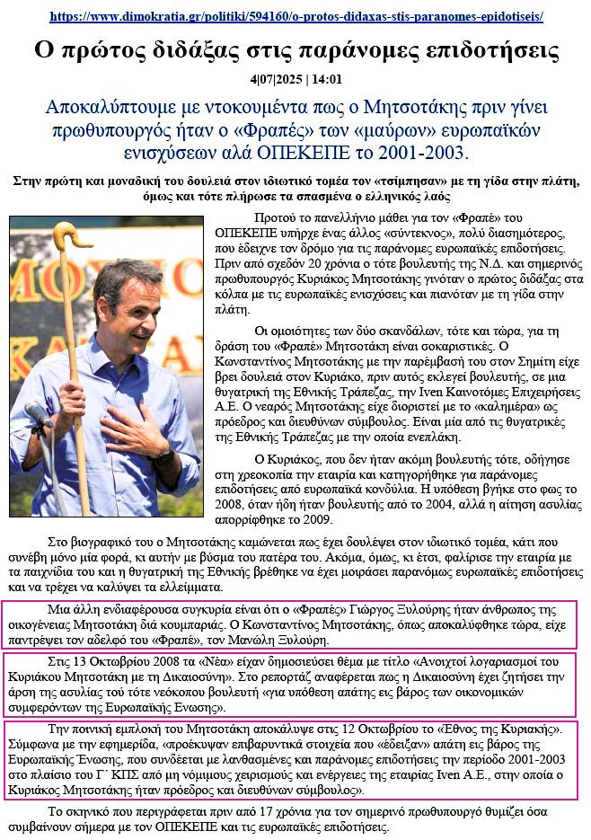 Δημοσίευμα της ΚΑΘΗΜΕΡΙΝΗΣ της 3/7/2025.