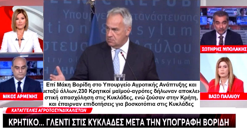 ΜΠΟΛΑΚΗΣ: «Θυμίζουμε ότι ο κύριος Βορίδης από την πρώτη στιγμή και πριν ακόμα ανοίξει η δικογραφία στη Βουλή, ας το πούμε έτσι, έλεγε ότι είχε βάλει την υπογραφή του ένα συμφωνώ πάνω στην Υπουργική Απόφαση του 2019 η οποία τη βρήκε από τις προηγούμενες δύο κυβερνήσεις. Εδώ όμως τι προκύπτει από αυτό το έγγραφο? Ότι ναι μεν ο κύριος Βορίδης έβαλε το 2019 την υπογραφή του για να μην μείνουν πίσω οι πληρωμές, για να αποδοθούν δηλαδή στους αγρότες οι επιδοτήσεις ωστόσο το 2020 έρχεται η Ένωση Συνεταιρισμών των Κυκλάδων να πει ότι εδώ υπάρχει κίνδυνος. Έστειλε ένα σήμα κινδύνου στον κύριο Βορίδη και στον κύριο Βάρα τότε πρόεδρο του ΟΠΕΚΕΠΕ και λέει ότι κινδυνεύουν να χάσουν τις επιδοτήσεις τους οι κτηνοτρόφοι των Κυκλάδων γιατί έχουν κάνει, να το πούμε έτσι, απόβαση στο σύστημα με τα βοσκοτόπια των νησιών στη Σίφνο, στη Σέριφο, παντού οι Κρητικοί.