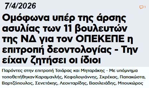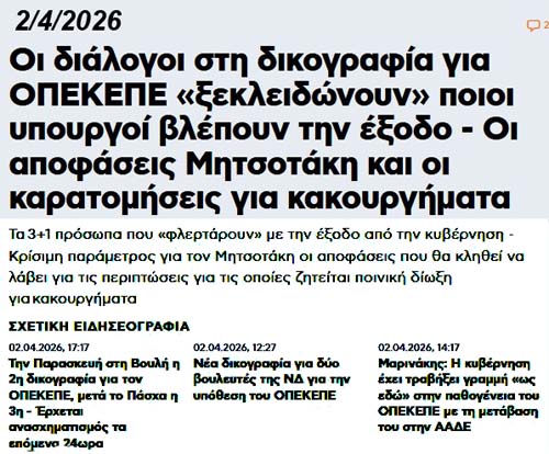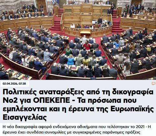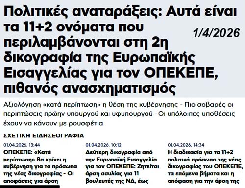 4/4/2026 - Η Δικογραφία ΟΠΕΚΕΠΕ-2 από την Ευρωπαϊκή Εισαγγελία και η Υπουργός Εργασίας Νίκη Κεραμέως στο ΚΑΛΗΜΕΡΑ της Φαίης Μαυραγάνη στον SKAI με απογμαγνητοφώνηση των διαλόγων και ταυτόχρονα δημοσιεύματα των εφημερίδων τις ίδιες ημέρες: